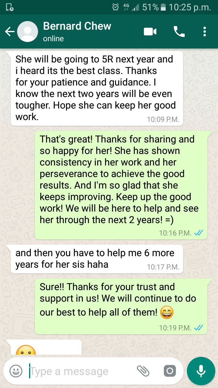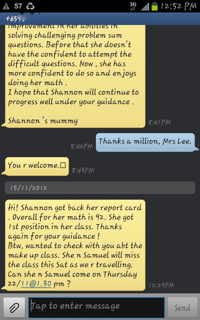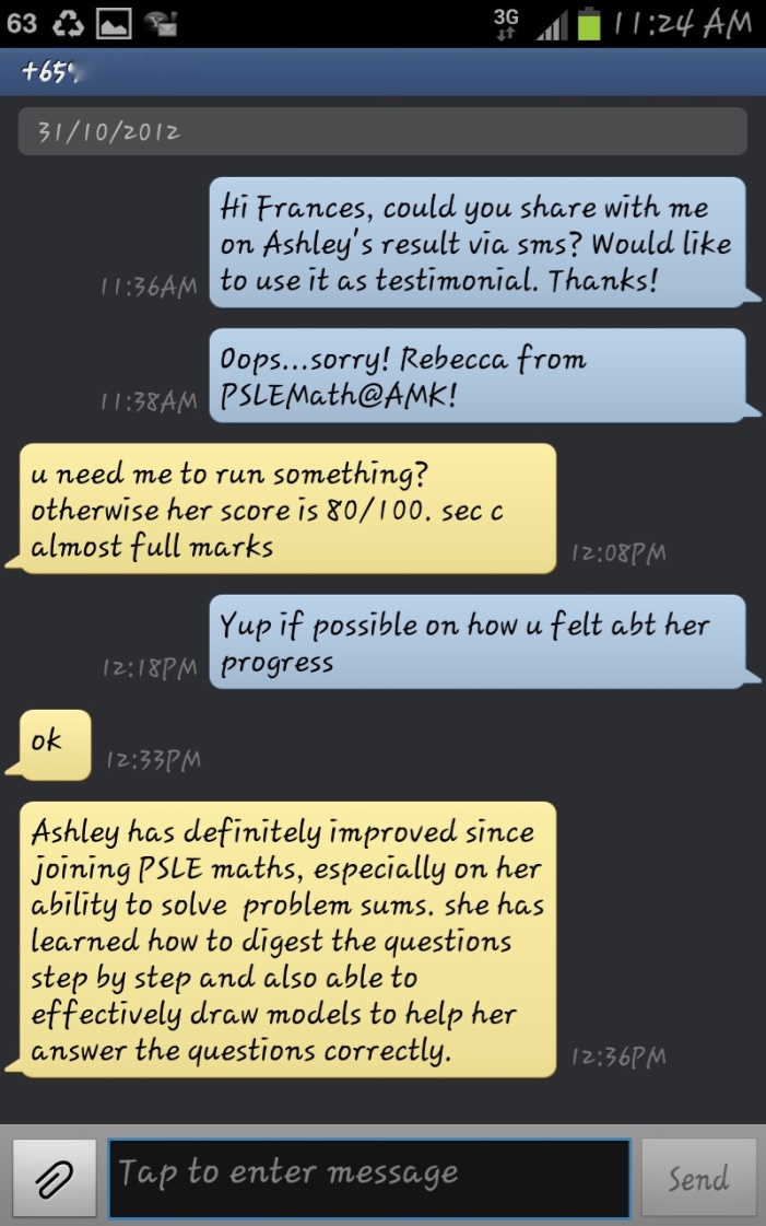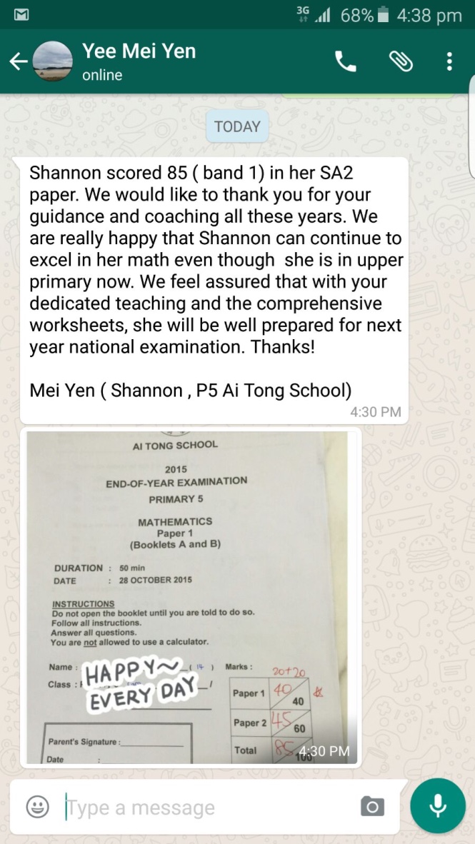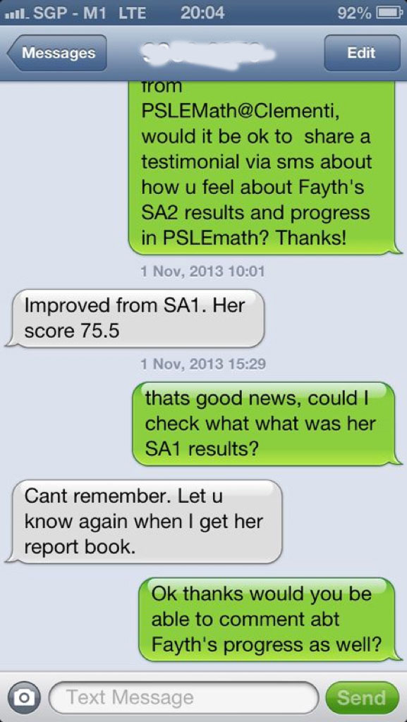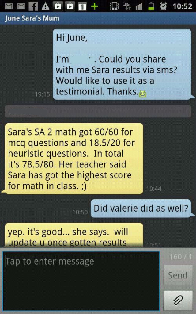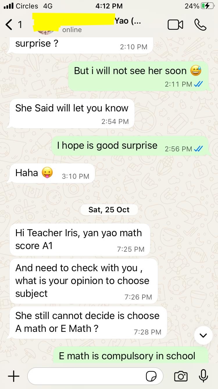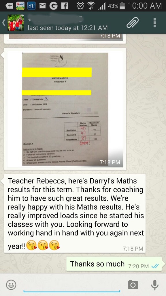 On this page, you’ll find real WhatsApp testimonials from parents whose children have benefited from our small-group math tuition programme. From building strong foundations in primary math tuition, to achieving confidence in PSLE Math, and preparing Secondary 4 students for their O-Level Mathematics examinations, these reviews reflect consistent academic growth and improved problem-solving ability.