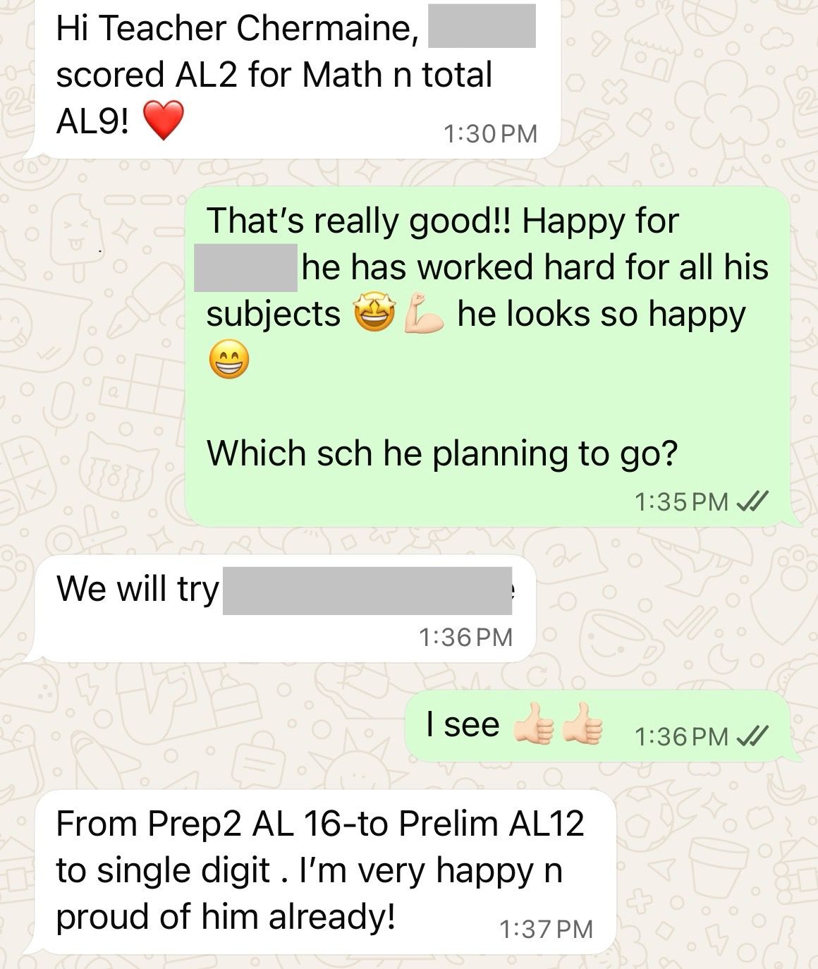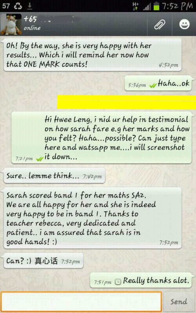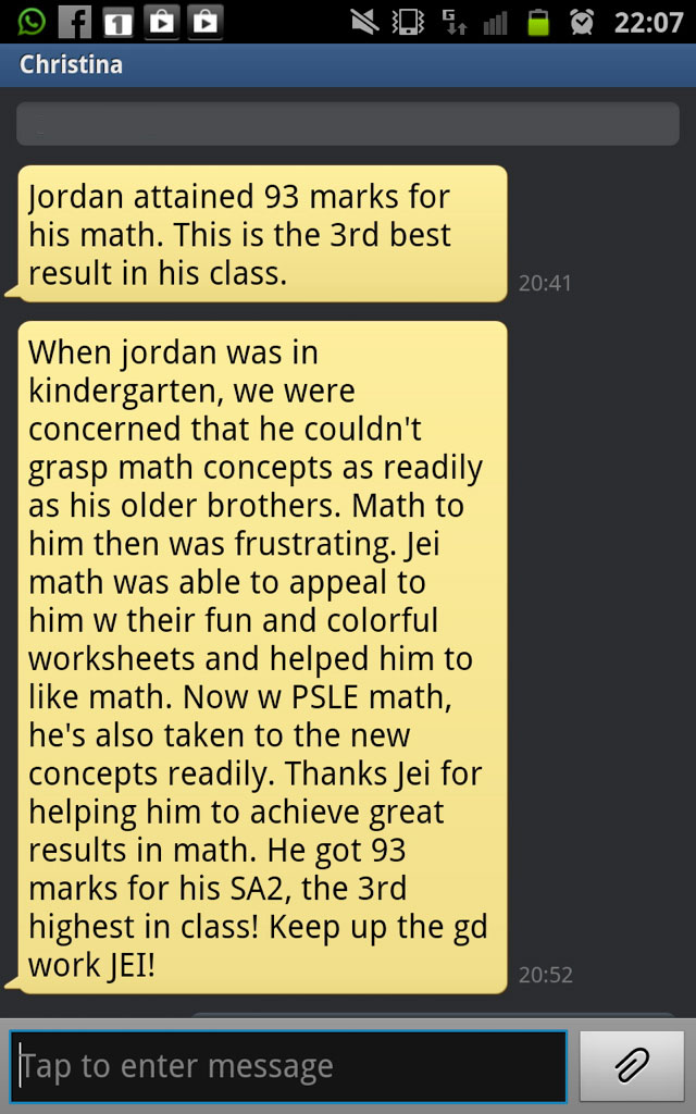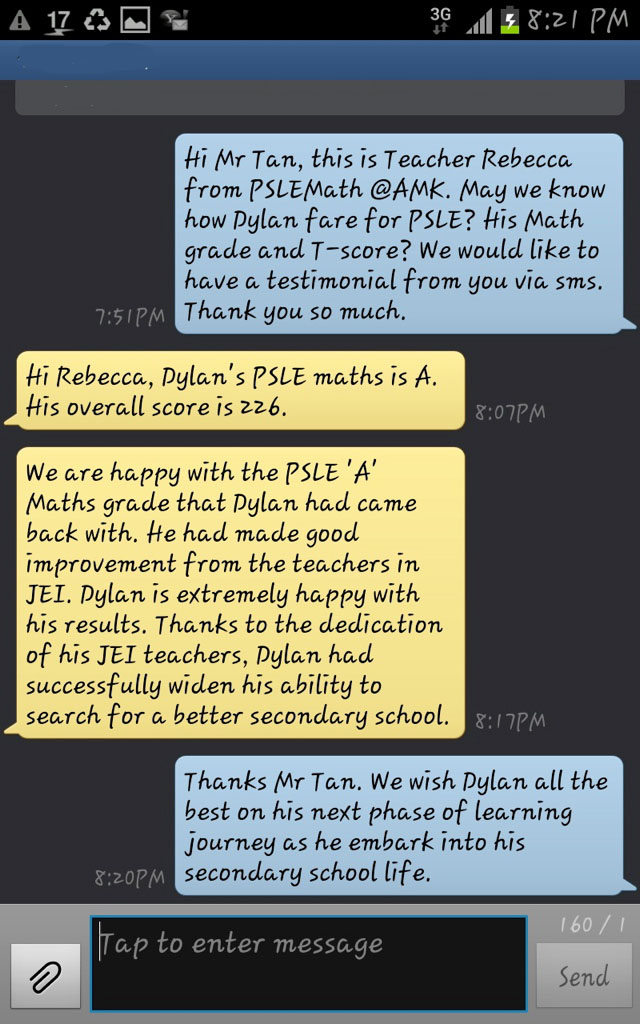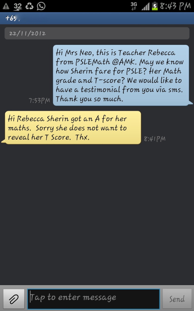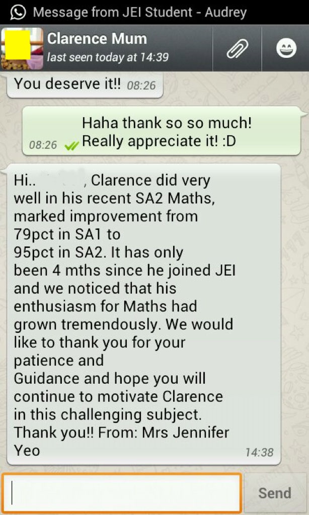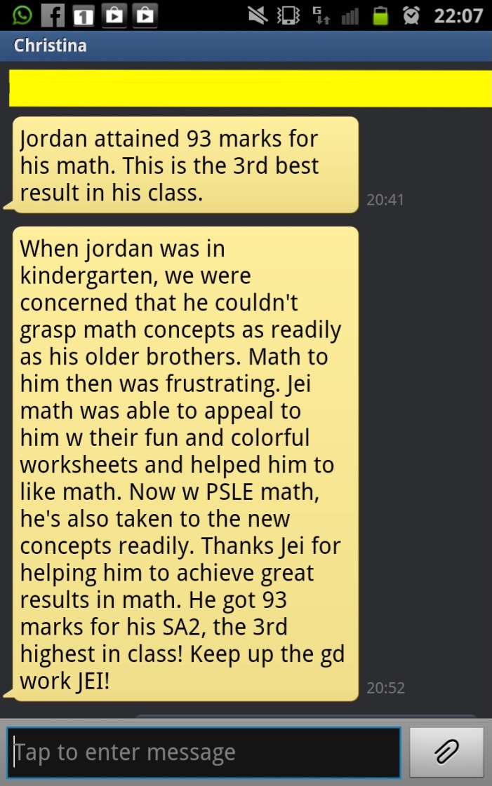 On this page, you’ll find real WhatsApp testimonials from parents whose children have benefited from our small-group math tuition programme. From building strong foundations in primary math tuition, to achieving confidence in PSLE Math, and preparing Secondary 4 students for their O-Level Mathematics examinations, these reviews reflect consistent academic growth and improved problem-solving ability.
