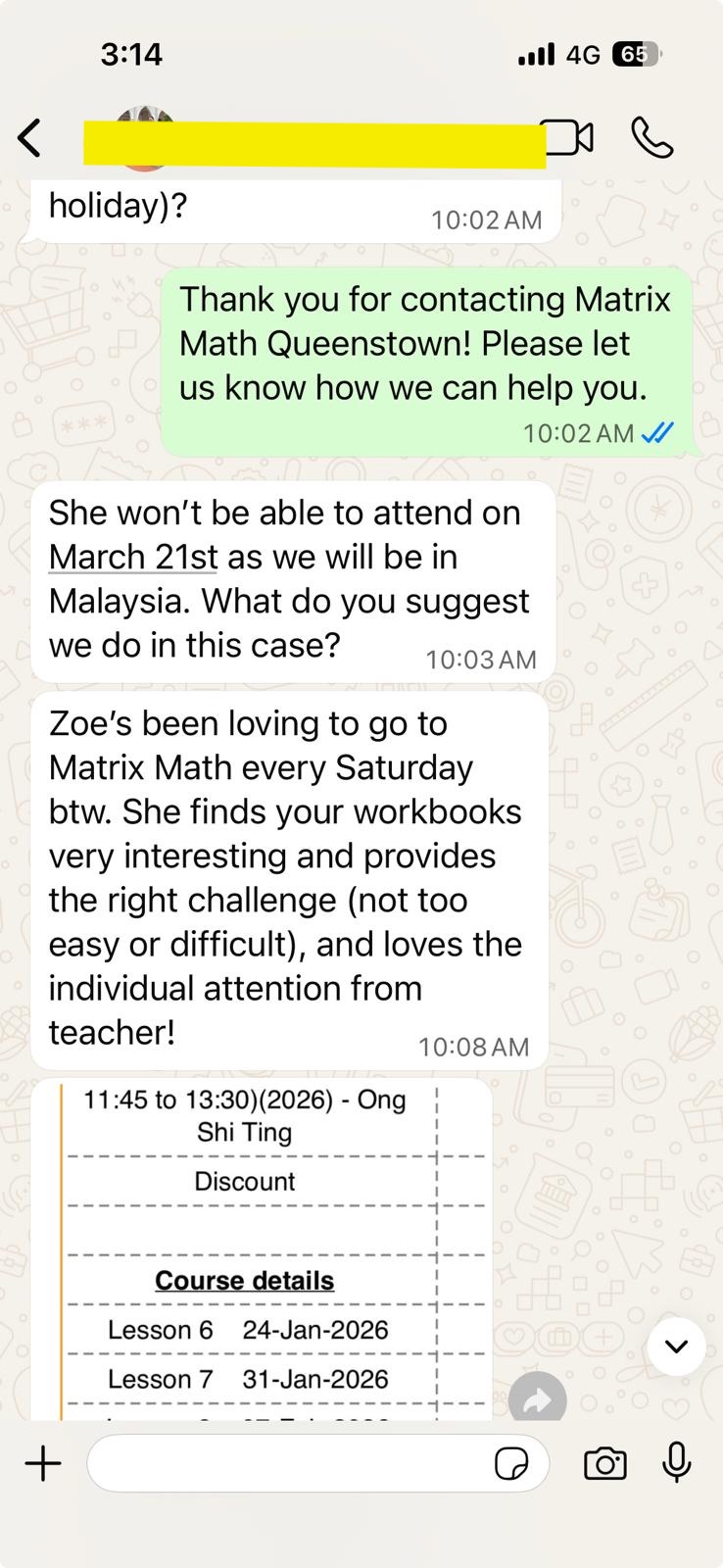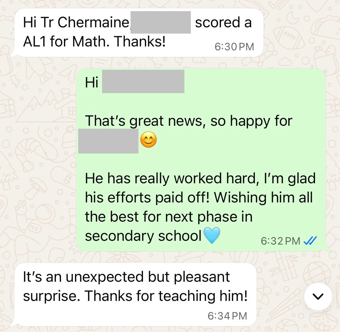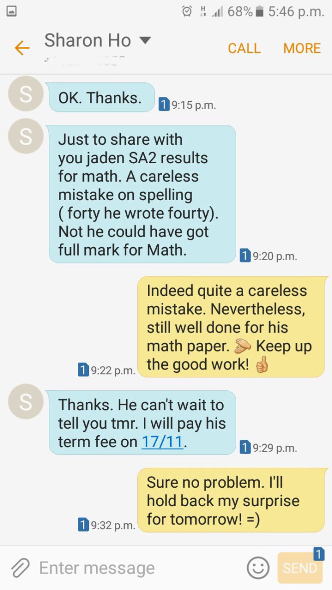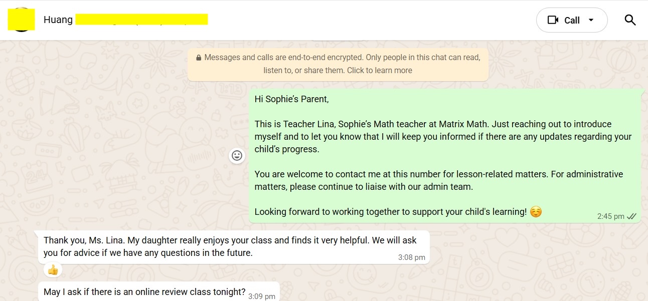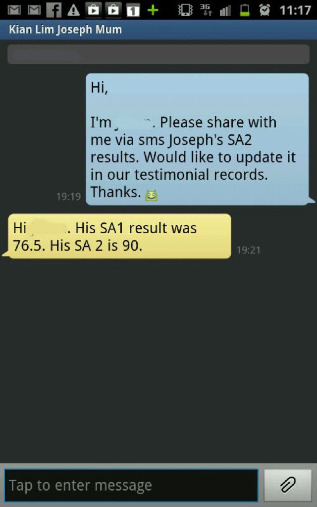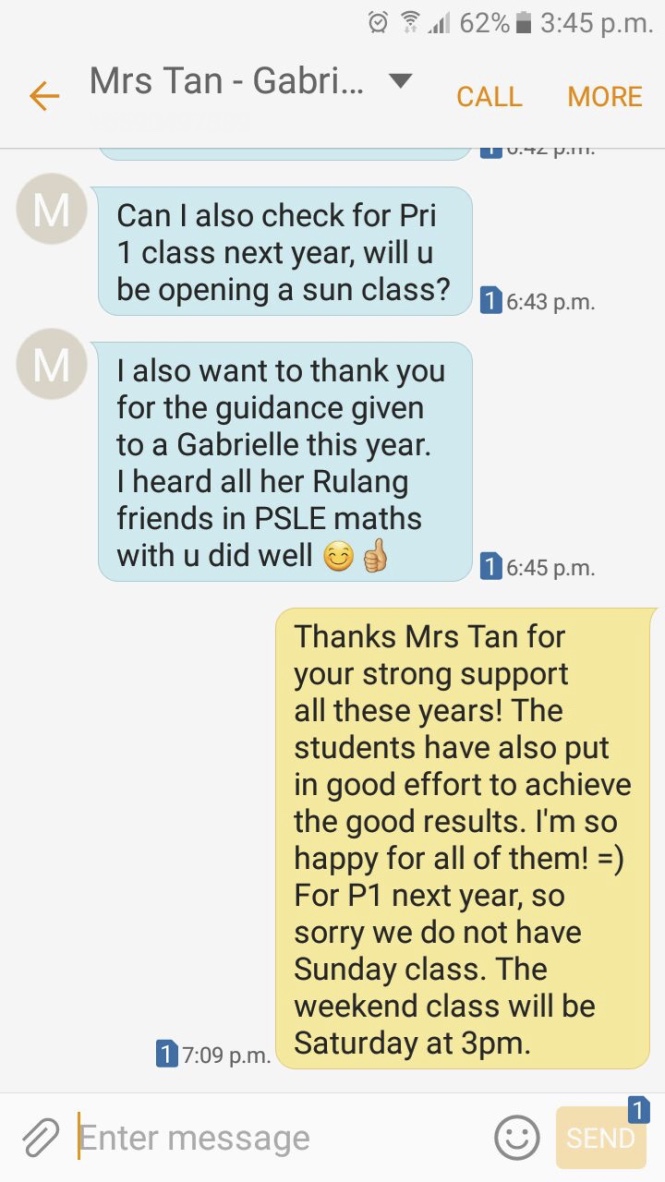 On this page, you’ll find real WhatsApp testimonials from parents whose children have benefited from our small-group math tuition programme. From building strong foundations in primary math tuition, to achieving confidence in PSLE Math, and preparing Secondary 4 students for their O-Level Mathematics examinations, these reviews reflect consistent academic growth and improved problem-solving ability.
